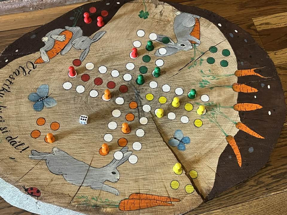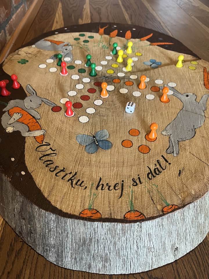 Originální společenská hra inspirovaná klasikou Člověče, nezlob se, kterou pro vás ručně vytvořím na masivní dřevěné kulatině.